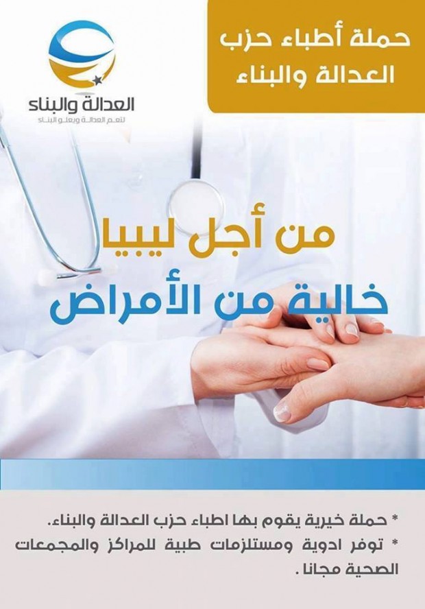 قام فريق طبي تطوعي من أعضاء حزب العدالة والبناء بإطلاق حملة تحت شعار “من أجل ليبيا خالية من الأمراض”.