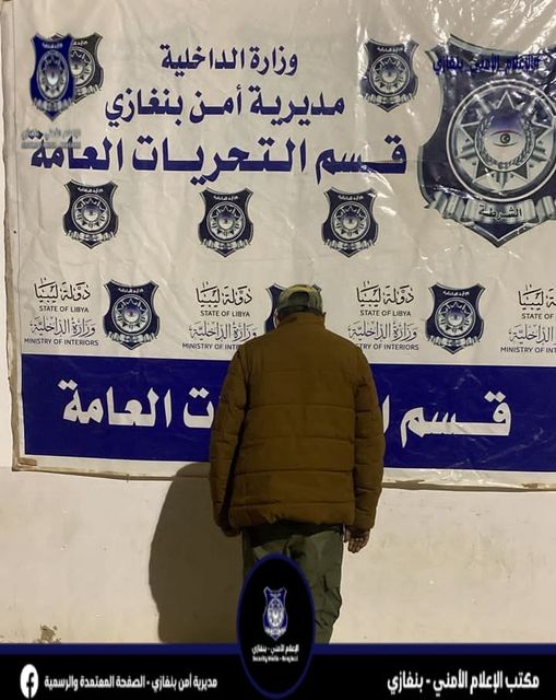 أعلنت مديرية أمن بنغازي، اليوم السبت، القبض على مطلوب لدى الشرطة القضائية ومحكوم عليه غيابيًا بالسجن 13 عاما على ذمة وقائع اتجار بالمخدرات والمُسكرات.