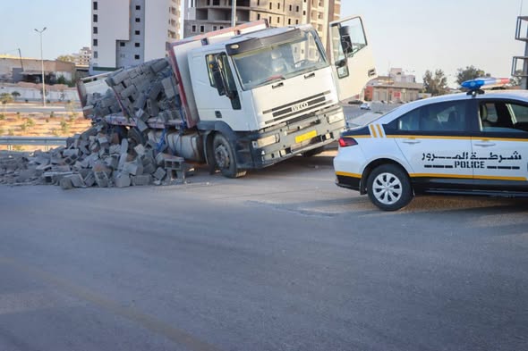 أعلنت مديرية أمن طرابلس وقوع حادث مروري على طريق الدائري الثالث، تمثّل في اصطدام شاحنة محمّلة بمواد بناء بسياج أحد الجسور، ما أسفر عن تناثر جزء من حمولتها على الطريق.