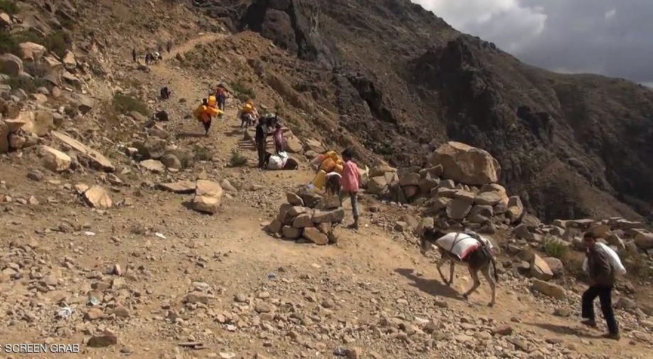 أهالي تعز يسلكون طرقا وعرة لإيصال الغذاء والدواء