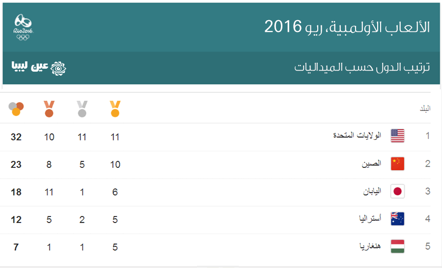 أولمبياد ريو 2016.. ترتيب الدول حسب الميداليات