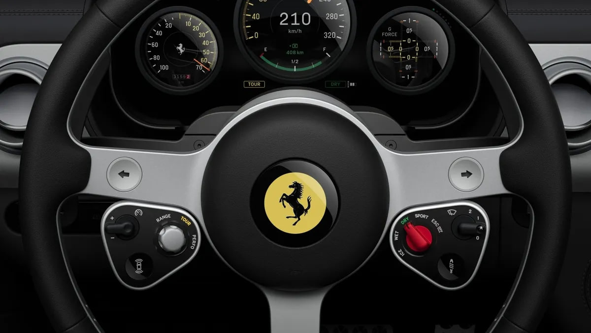 ورغم بساطة التصميم الرقمية، حافظت فيراري على وجود أزرار ومفاتيح معدنية فاخرة لتقديم تجربة قيادة تجمع بين التقنية والفخامة العملية.