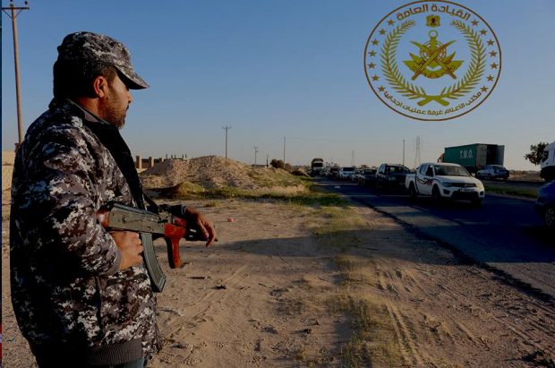 بناء على تعليمات آمر غرفة عمليات إجدابيا العقيد فوزي المنصوري بنشر دوريات قتالية مسلحة في مداخل مدينة إجدابيا.