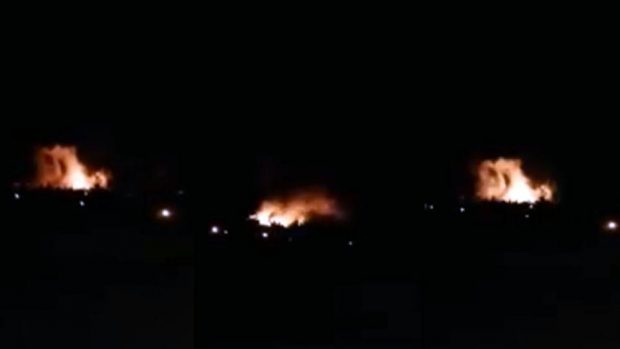 وبث ناشطون سوريون على الإنترنت صورا قالوا إنها للضربات الصاروخية التي استهدفت المطار ليلا، وتظهر أصوات انفجارات وكتلا من اللهب وسط الليل.