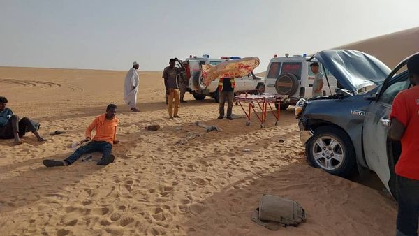 وقال رئيس جهاز الإسعاف والطوارئ الكفرة إبراهيم بالحسن، في تصريح لوكالة الأنباء الليبية، إن السيارة خرجت من السودان متجهة إلى ليبيا رفقة سيارة أخرى، تحملان ما يقارب 70 شخصاً من النازحين، لتتعرض إحداهما لحادثة انقلاب وسط الكثبان الرملية.