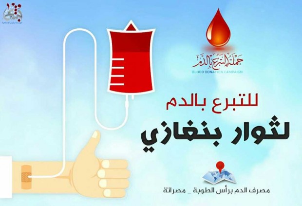 أطلق عدد من النشطاء حملة للتبرع بالدم لجرحى مقاتلي مجلس شورى ثوار بنغازي ممن يتلقون العلاج بالمنطقة الغربية.