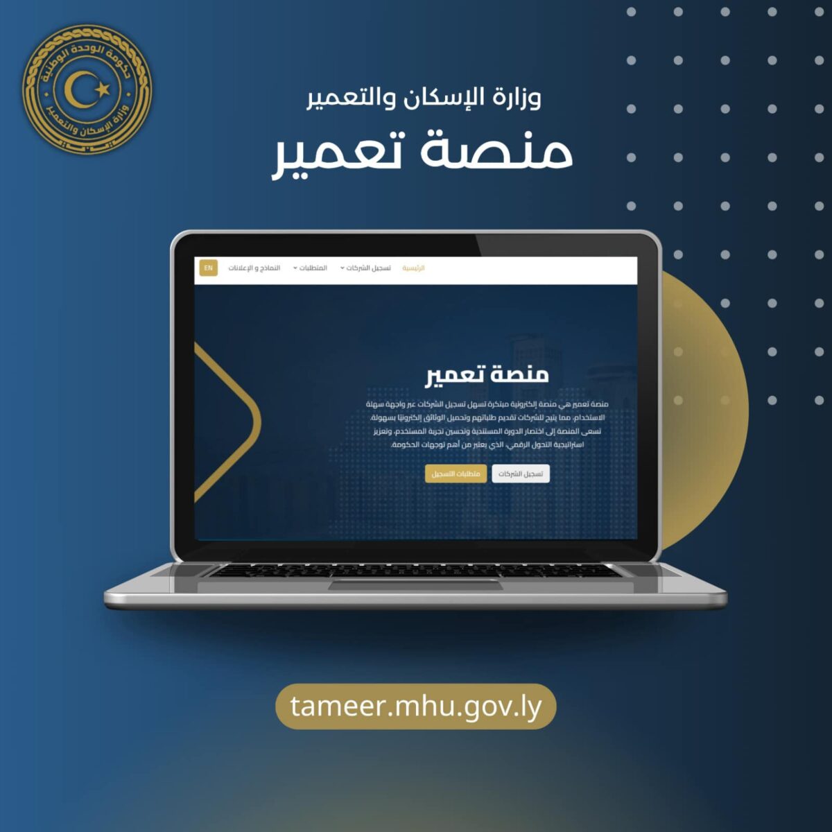 وللتسجيل على المنصة على الرابط التالي: https://tameer.mhu.gov.ly/.