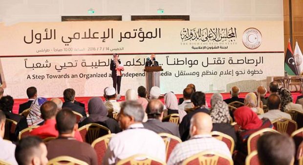 عقد بمقر المجلس الأعلى للدولة “المؤتمر الإعلامي الأول” في العاصمة طرابلس، الخميس، برعاية وإشراف وتنظيم لجنة الشؤون الإعلامية بالمجلس، تحت شعار: “نحو إعلام مُنظم ومستقل.. الرصاصة تقتل مواطنًا.. والكلمة الطيبة تُحيي شعبًا”.