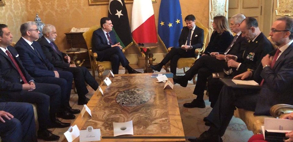 التقى رئيس المجلس الرئاسي لحكومة الوفاق الوطني فائز السراج والوفد المرافق له، صباح الثلاثاء، بالعاصمة الإيطالية روما، رئيس الوزراء الإيطالي جوزيبي كونتي بحضور عدد من المسؤولين الإيطاليين.