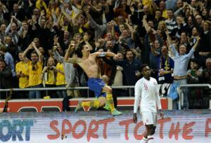 وأحرز ابراهيموفيتش أول هدف في الاستاد الجديد بعد مرور 20 دقيقة بعد أن سدد الكرة في سقف المرمى قبل أن يتعادل لمنتخب بلاده في الدقيقة 77 من تسديدة قوية لم ينجح الحارس جو هارت في التصدي لها.