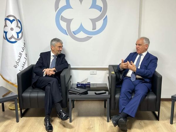 بحث محمد الرعيض، رئيس الاتحاد العام لغرف التجارة والصناعة والزراعة، بيتر ميلت عضو مجلس الأعمال الليبي البريطاني ، ونائبة السفير البريطاني في ليبيا “كاثرين وايلد” القضايا الاقتصادية ذات الاهتمام المشترك؛ على رأسها تبادل الوفود الاقتصادية تمهيدا لخلق شراكات واستثمارات خاصة على مستوى القطاع الخاص والتدريب وكافة المجالات.