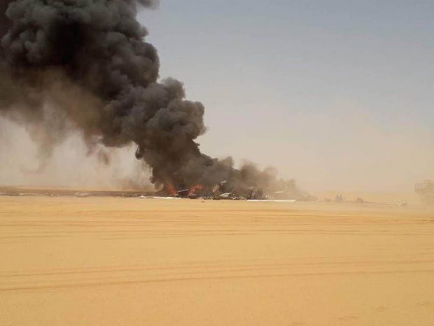 أفادت المؤسسة الوطنية للنفط أن طائرة الشحن المستأجرة من نوع C130 تحطمت أثناء اقلاعها من مطار حقل الشرارة بعد تفريغها 18 طن من مواد التموين ومستلزمات الصيانة للحقل وسقطت الطائرة على بعد كيلومترين من المطار.