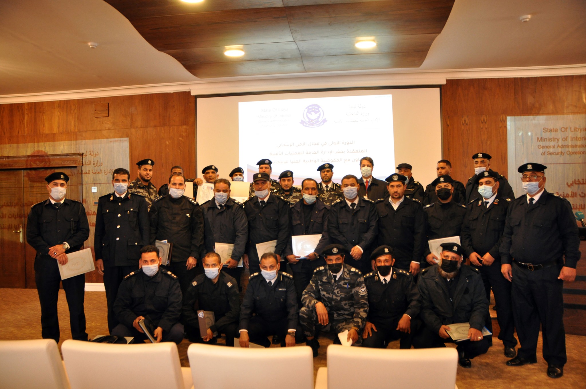 وشملت الدورة إعداد مدربين لتدريب أعضاء ومنتسبي مديريات الأمن وذلك للاستعداد للاستحقاق الانتخابي القادم بتاريخ 24 ديسمبر 2021م.