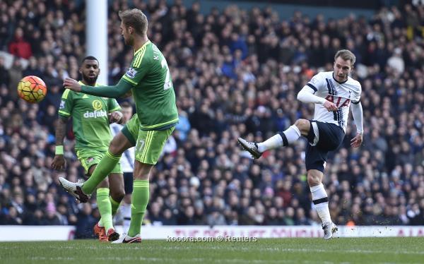 وسجل الدنمركي اريكسن هدفا في كل شوط بعدما حالفه بعض الحظ في المرتين لتزداد مصاعب سندرلاند الذي يقوده المدرب سام ألاردايس.