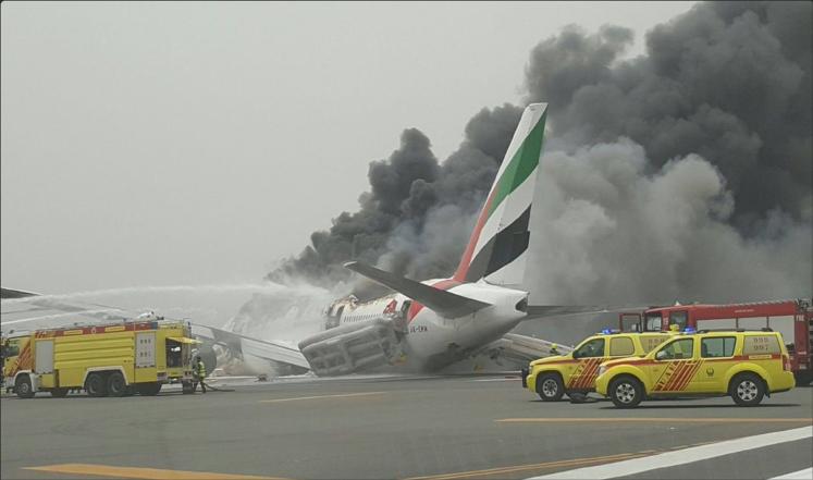 وقالت حكومة إمارة دبي إن طائرة تابعة لشركة طيران الإمارات قادمة من الهند تعرضت اليوم لحادث لدى هبوطها اضطراريا في مطار دبي الدولي وشبت فيها النيران، بينما أجلت فرق الطوارئ كافة ركاب الطائرة الإماراتية وطاقمها -وعددهم ثلاثمئة- بسلام.