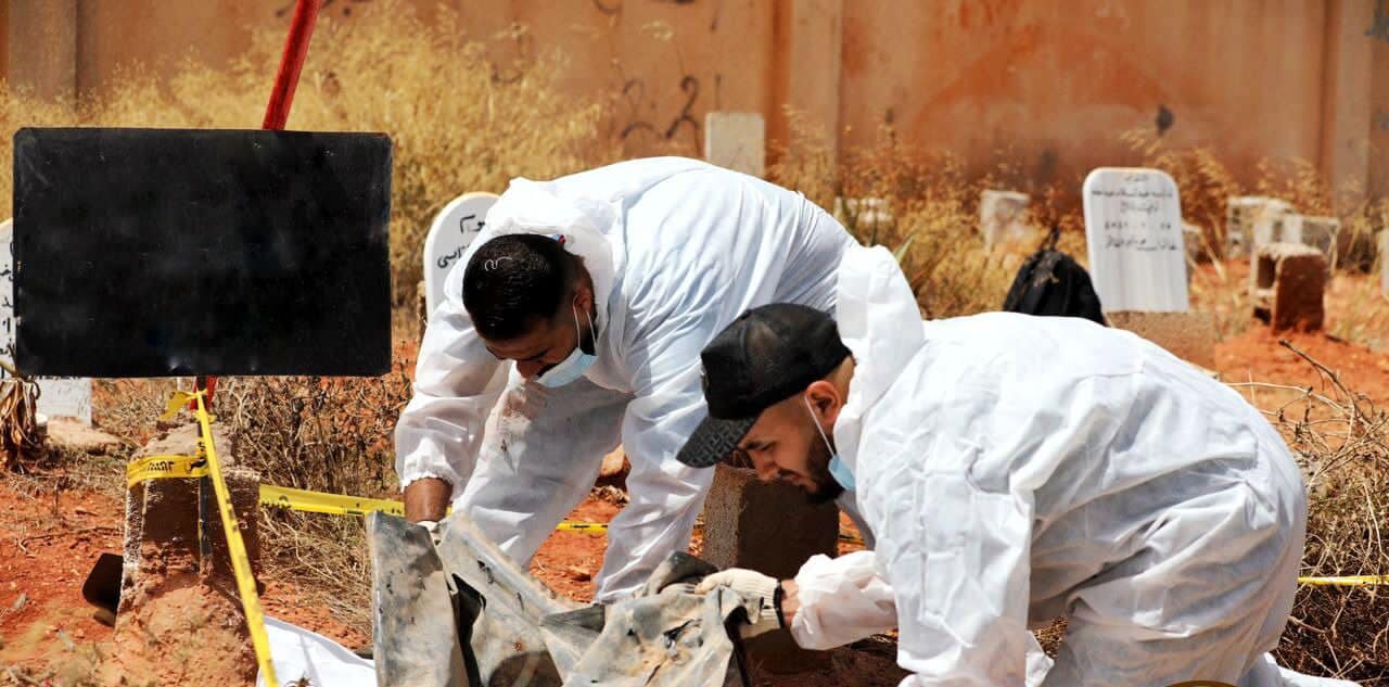 وقامت فرق إدارة البحث عن الرفات فور وصولها، باستخراج جثتين مجهولتي الهوية من مقبرة الفتايح بالمدينة، وأخذ عينات من هذه الجثث لمطابقتها عبر تحليل الحمض النووي DNA.