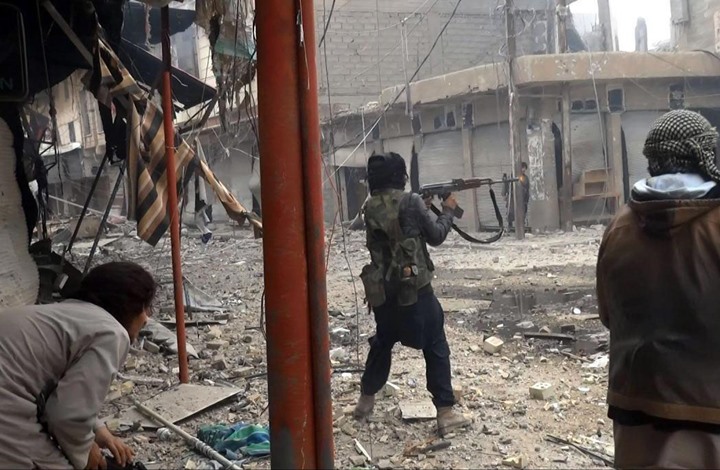 التنظيم نشر صورا أخرى لمقاتليه الذين يخوضون معارك عنيفة ضد القوات العراقية، وسط مدينة مدمّرة بشكل شبه كامل؛ حيث ظهرت غالبية المباني مدمرة، وأخرى تشتعل فيها النيران جرّاء القصف العنيف من قبل قوات التحالف.