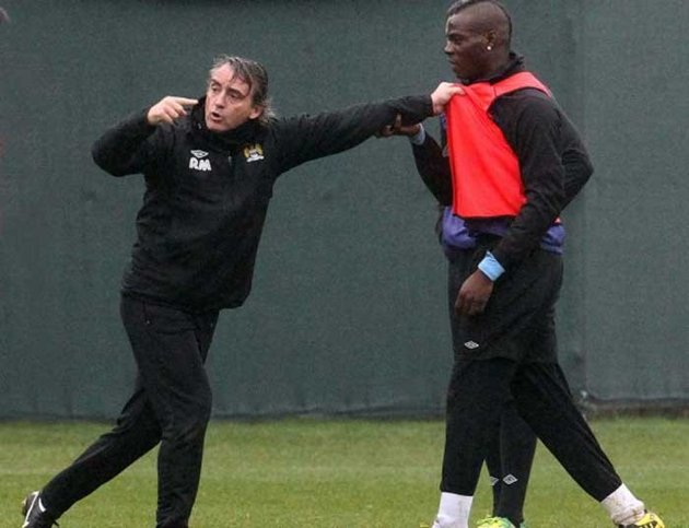 نشبت مشاجرة بين روبرتو مانشيني المدير الفني لمانشستر سيتي ومهاجمه ماريو بالوتيللي خلال تدريبات الفريق أمس الخميس.