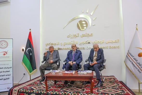 شارك رئيس اللجنة الاقتصادية بالمجلس الأعلى للدولة عبدالمطلب علي بقص، ورئيس اللجنة القانونية بالمجلس الأعلى للدولة عادل كرموس، وعضو اللجنة الاقتصادية بالمجلس الأعلى للدولة سعد بن شرادة، في جلسة حوارية تناولت التحديات الاقتصادية المرتبطة بالتوترات المتصاعدة في منطقة الخليج العربي وانعكاساتها المحتملة على الاقتصاد الليبي.