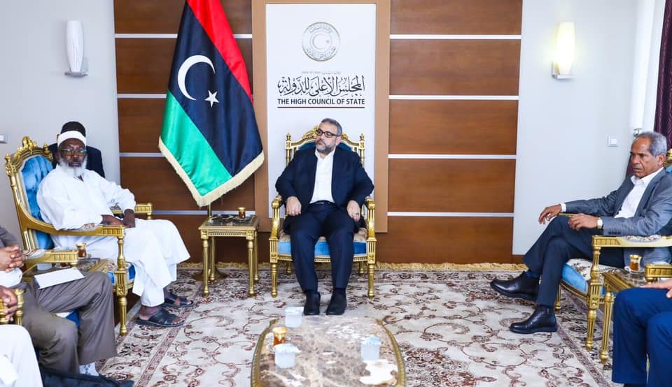 التقى رئيس المجلس الأعلى للدولة خالد المشري، الخميس، وفدًا من أعيان مدينة مرزق.