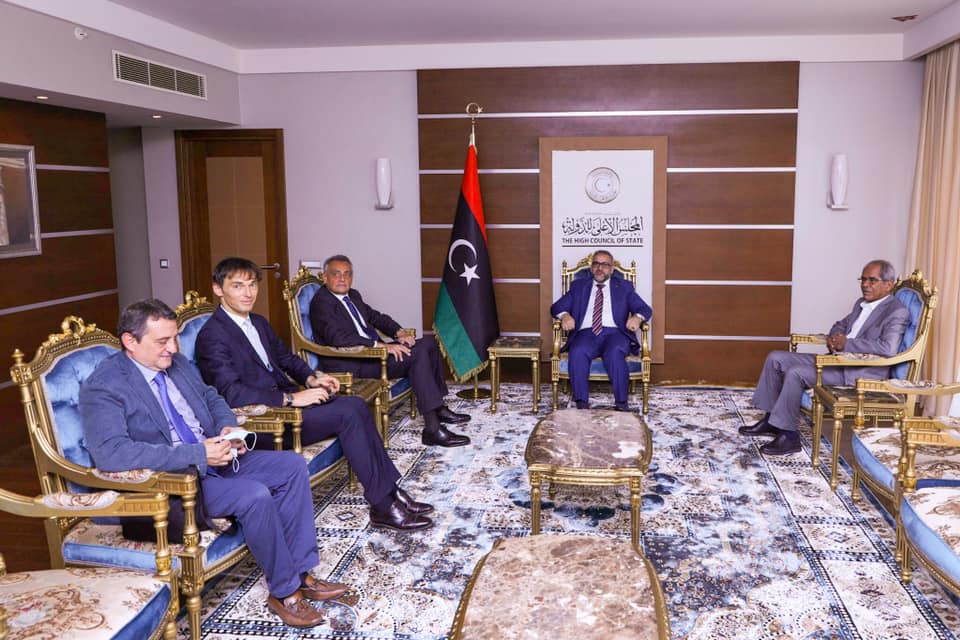 التقى رئيس المجلس الأعلى للدولة خالد المشري، بحضور النائب الأول محمد بقي، اليوم الثلاثاء، السفير الإيطالي لدى ليبيا جوزيبي بوتشينو، رفقة نائبه والتر دي مارتينو، بمقر المجلس في العاصمة طرابلس.
