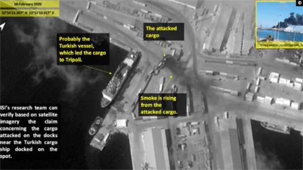 نشرت شركة متخصصة في التقاط صور بالأقمار الصناعية، صورة توضح تفاصيل قصف قوات حفتر لميناء طرابلس البحري.