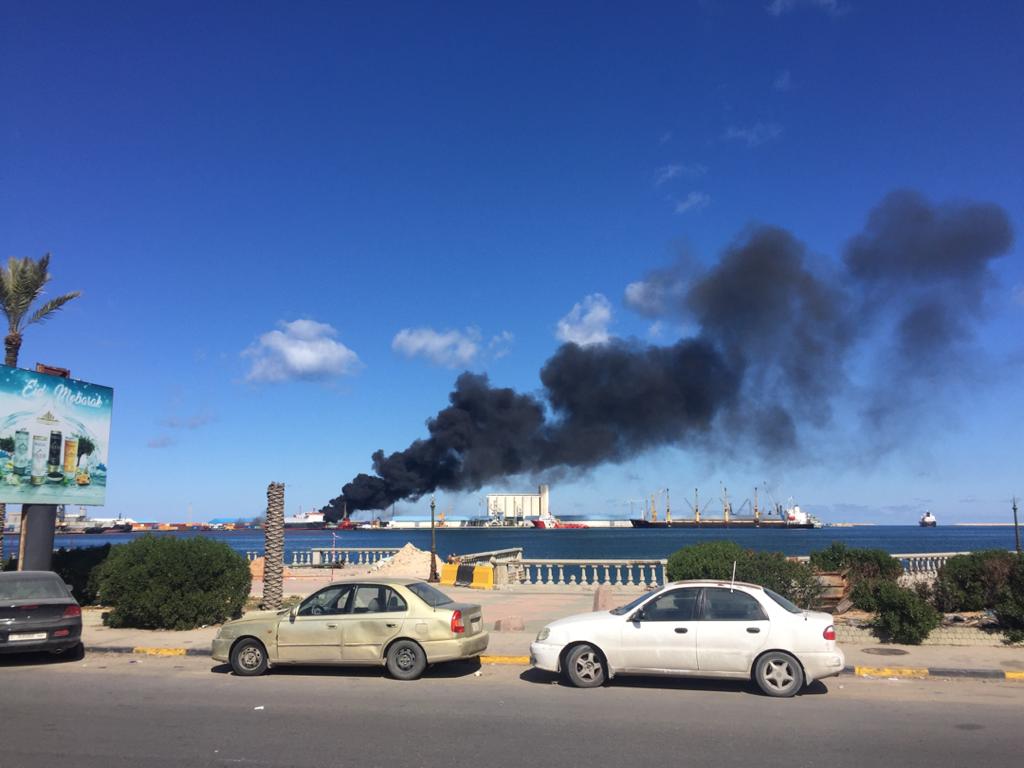 مدير ميناء طرابلس البحري نفى وجود أي سفينة تركية أو أي تواجد عسكري بالميناء لحظة قصفه. [سوشيال ميديا]