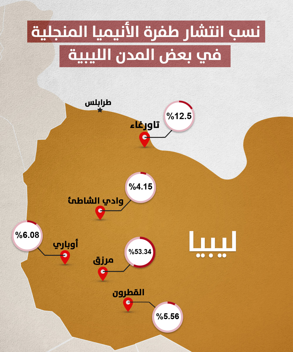 كما تؤكد الحاجي أن أغلب المصابين بالأنيميا المنجلية المترددين إليها يأتون من مدن الجنوب، ومن تاورغاء شرق طرابلس، والعجيلات غربها.