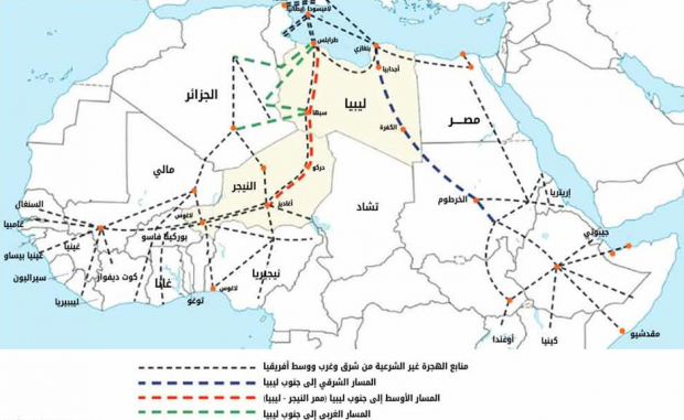 منذ سنوات عديدة كانت ليبيا نقطة الوصول والعبور المفضلة لدى اللاجئين والمهاجرين الفارين من الفقر والصراع والاضطهاد في بلدان أفريقيا جنوب الصحراء الكبرى والشرق الأوسط. ويهرب المهاجرون من ليبيا وإريتريا ونيجيريا والصومال حيث يواجهون الفقر والجوع والموت. ويأتي الكثير منهم إلى ليبيا على أمل الوصول إلى أوروبا بالطرق غير الشرعية. وتجبر زيادة انعدام القانون والتهديد من المجموعات الإجرامية والإرهابية المهاجرين على الفرار إلى أوروبا بالقوارب. وهناك السبب الأخر لمغادرة الكثيرين منهم وهو التعسف في مراكز احتجاز المهاجرين في ليبيا، حيث يحتجز الآلاف من اللاجئين والمهاجرين ومن بينهم الأطفال في ظروف لا تطاق.