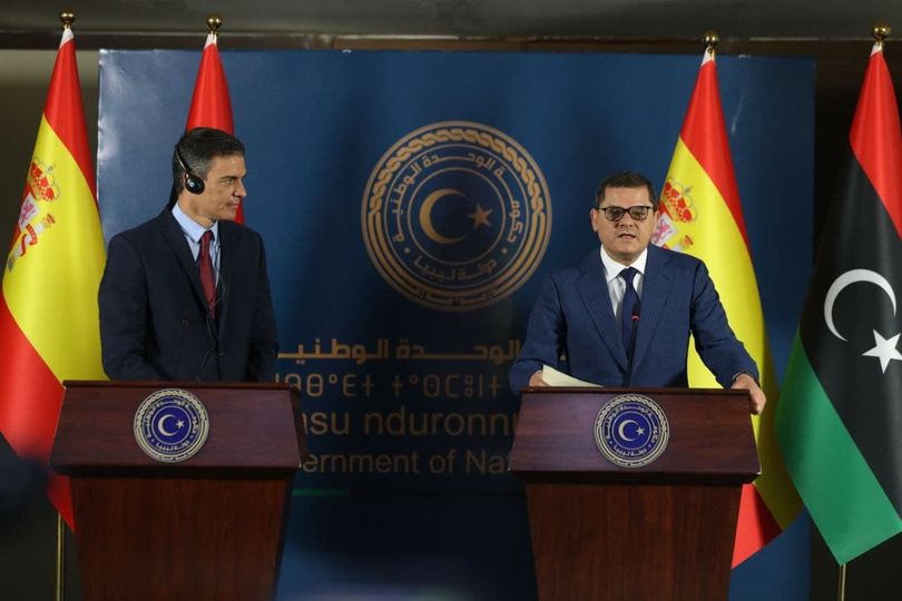 عقد رئيس حكومة الوحدة الوطنية عبدالحميد الدبيبة، اليوم الخميس، مع رئيس الحكومة الإسبانية بيدرو سانشيز، جلسة مباحثات تناول خلالها العلاقات الثنائية بين البلدين وسبل تنميتها بما يخدم المصالح المشتركة للبلدين الصديقيين.