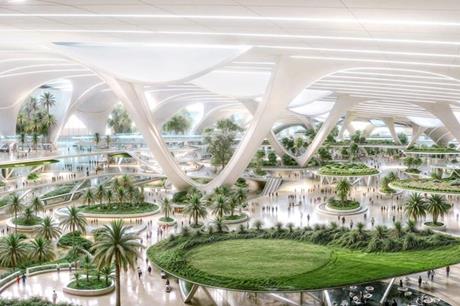 وتابع بن راشد أن المطار سيضم 400 بوابة للطائرات وخمسة مدارج متوازية، وسيستخدم تقنيات جديدة لأول مرة في قطاع الطيران.