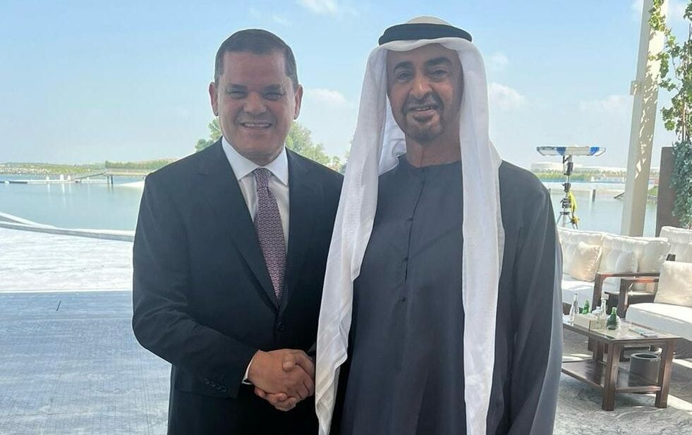 وخلال لقائه اليوم رئيس حكومة الوحدة الوطنية عبد الحميد الدبيبة في قصر المنار بأبوظبي، ناقش الجانبان نتائج لقائهما السابق بشأن التعاون الاقتصادي بين البلدين، والوقوف على آخر المستجدات السياسية في المنطقة، بحسب المكتب الإعلامي للحكومة.