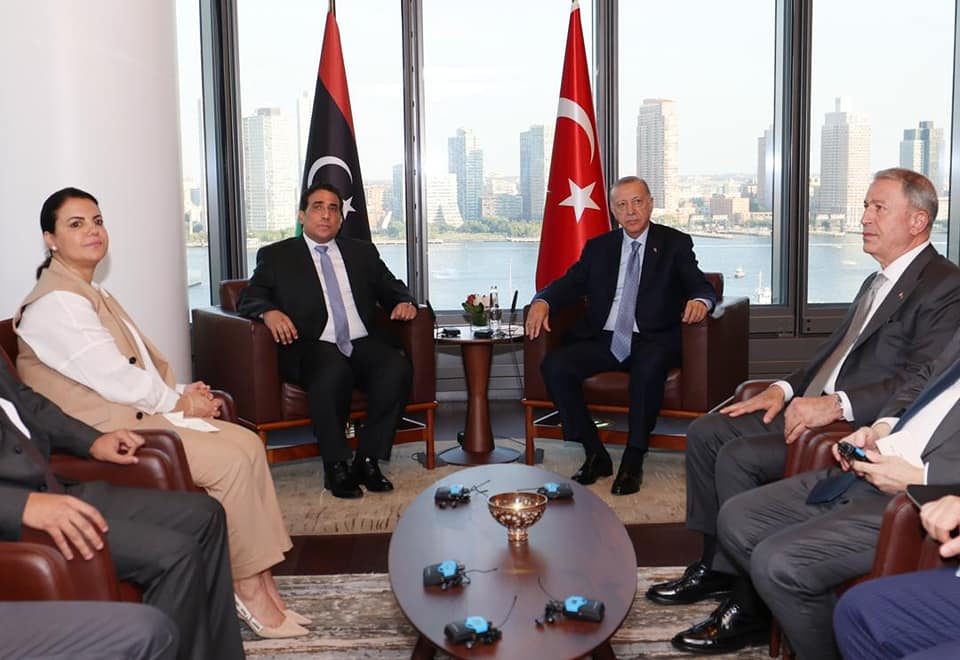 جاء ذلك خلال لقاء جمعهما على هامش أعمال الدورة 77 لجمعية الأمم المتحدة في نيويورك، وكان الاجتماع بحضور وزيرة الخارجية والتعاون الدولي نجلاء المنقوش، ووزير الدفاع التركي خلوصي أكار.