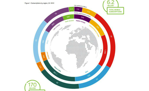 وقسّمت الدراسة مناطق العالم حسب نمو عدد المُشتركين فيها، ووجدت أن الصين احتلّت المركز الأول بـ 39 مليون مُشترك جديد في عام 2012، وحلّت الهند في المرتبة الثانية بـ 25 مليون مُشترك جديد.