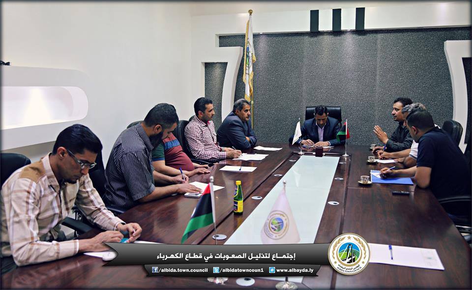 عقد اليوم الإثنين في مقر المجلس البلدي البيضاء اجتماعا موسعا لمناقشة العقود المبرمة مع شركة الكهرباء المتعثرة بسبب عدم وجود تغطية مالية من قبل الشركة العامة للكهرباء.