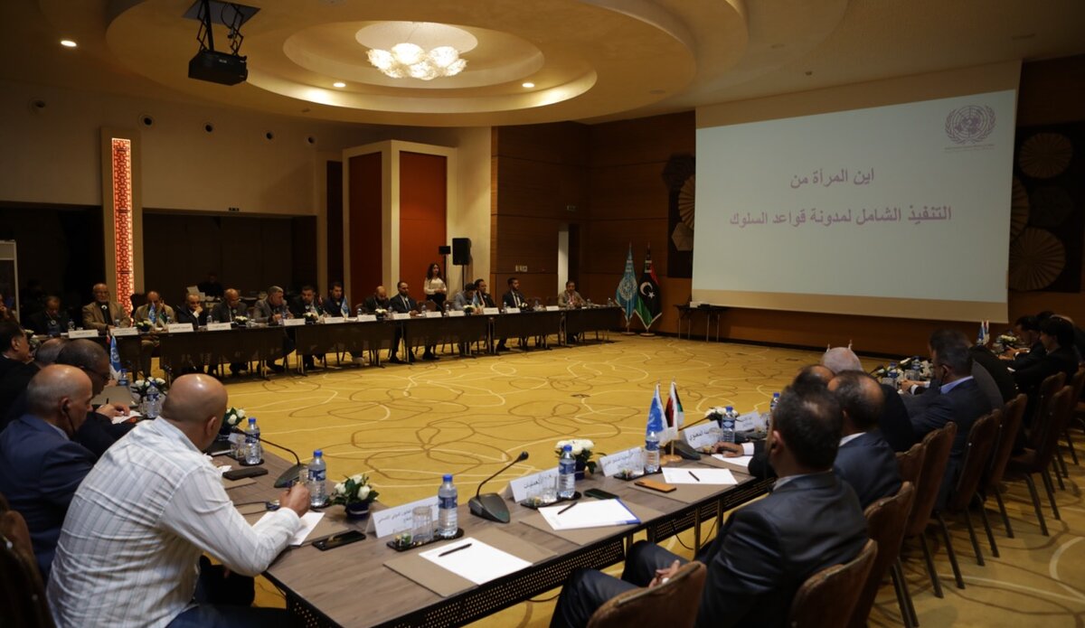 وبحسب البعثة، “على مدى يومين، ناقش ممثلون عن القطاعات العسكرية والأمنية من كافة مناطق ليبيا، فضلا عن ممثلي عدد من الوزارات والمؤسسات المعنية، آليات وسبل وضع مدونة السلوك للعسكريين والأمنيين موضع التنفيذ. كما ناقش مسؤولون من المؤسستين العسكرية والأمنية، في سلسلة من الاجتماعات الجانبية يسرتها البعثة على هامش الورشة، الآليات الكفيلة بتنسيق وتوحيد الجهود وتعزيز نجاعة الخطط الأمنية على الأرض”.