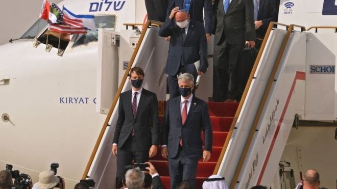 وكانت الطائرة التابعة لشركة “إل عال” الإسرائيلية قد أقلعت في وقت سابق من تل أبيب صوب أبوظبي، وعلى متنها وفد أميركي صهيوني برئاسة مستشار الرئيس الأميركي للشرق الأوسط، جاريد كوشنر.