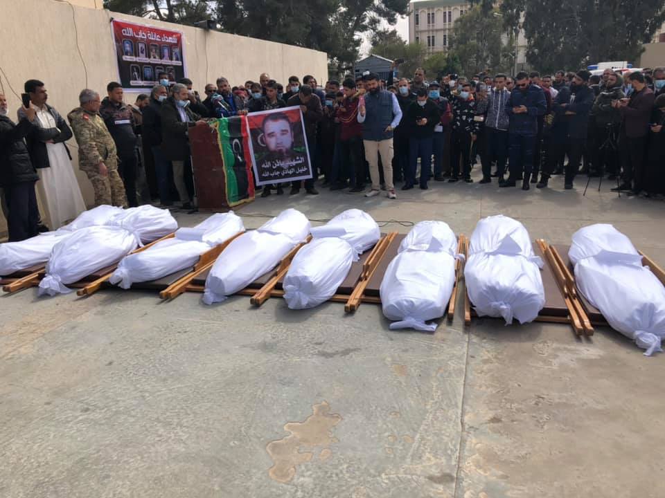 ونشرت الصفحة الرسمية لمجلس ترهونة التسييري مراسم التأبين وصلاة الجنازة على أرواح الضحايا.