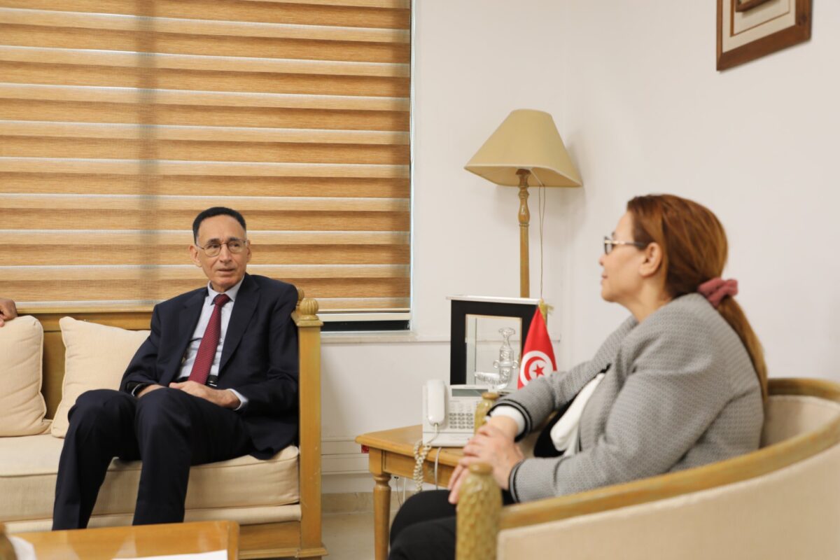 بحث وزير الاقتصاد في حكومة الوحدة الوطنية محمد الحويج مع نظيرته التونسية فضيلة بن حمزة توسيع التعاون التجاري بين ليبيا وتونس.