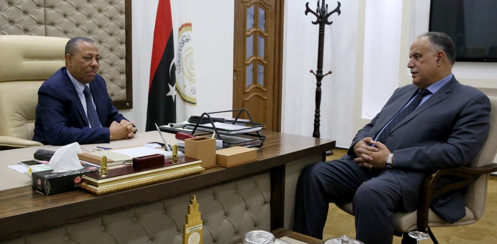 بحث رئيس مجلس وزراء الحكومة الليبية المؤقتة السيد عبد الله عبد الرحمن الثني الخميس سير عمل وزارة الداخلية خلال اجتماع عقده بمكتبه بمقر الحكومة في منطقة قرنادة مع معالي وزير الداخلية المستشار إبراهيم بوشناف.
