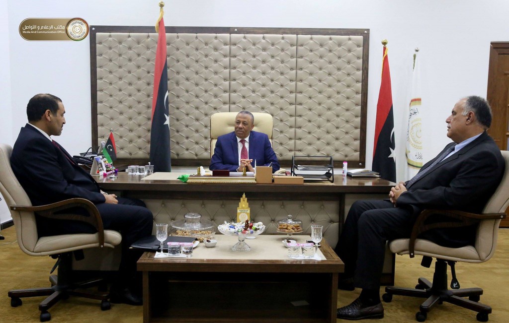 استقبل رئيس مجلس وزراء الحكومة الليبية المؤقتة عبد الله عبد الرحمن الثني اليوم الثلاثاء بمكتبه بديوان مجلس الوزراء في منطقة قرنادة معالي وزير الداخلية المستشار إبراهيم خليفة بوشناف، ومعالي وزير التعليم الدكتور فوزي بومريز الزوي وذلك عقب يوم من أدائهم ووزير العدل المستشار محمود صليل اليمين القانونية أمام مجلس النواب.