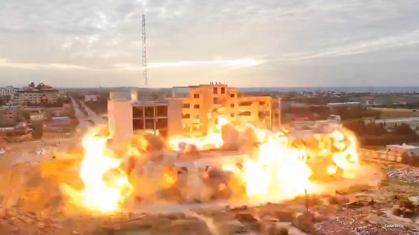 وتداولت شبكات التواصل الاجتماعي الإسرائيلية والفلسطينية، مقطع فيديو نشره الجيش لتفجير هذا المبنى، حيث تصاعدت أعمدة ضخمة من الدخان الأسود الكثيف من المبنى عقب تفجيره.