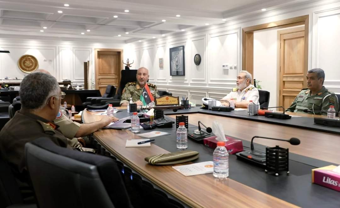 عقد رئيس الأركان العامة للجيش الليبي، صباح اليوم الإثنين بمكتبه، اجتماعاً ضم رؤساء الأركانات النوعية، ومدير إدارة الشرطة العسكرية.