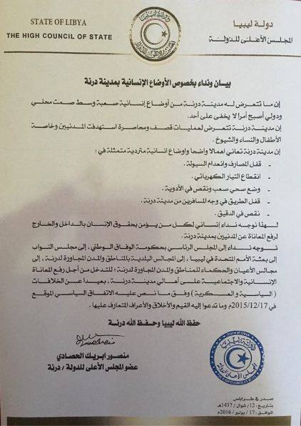 وجّه عضو المجلس الأعلى للدولة عن مدينة درنة “منصور الحصادي” اليوم الأحد نداء إنسانياً إلى المجلس الرئاسي بحكومة الوفاق وبعثة الأمم المتحدة إلى ليبيا والمجالس البلدية للمناطق المجاورة لدرنة وكل من يؤمن بحقوق الإنسان في الداخل والخارج من أجل رفع المعاناة الإنسانية والاجتماعية على أهالي المدينة.