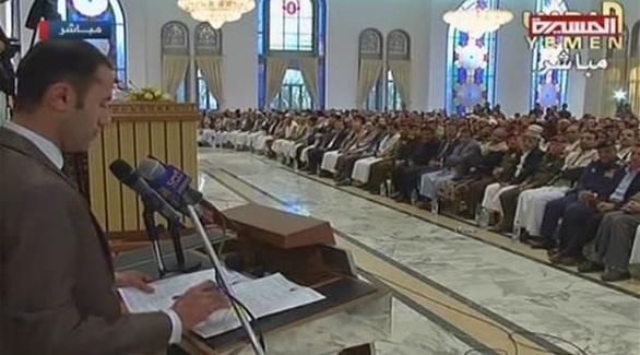 ونص الإعلان، الذي تلي من القصر الجمهوري بصنعاء، وبثه على الهواء التلفزيون الحكومي الذي تسيطر عليه الحركة وتلفزيون “المسيرة” التابع لها، في 16 مادة على تشكيل مجلس وطني مكون من 551 عضواً، سيتولى تشكيل مجلس رئاسي مكون من 5 أعضاء، وتشكيل حكومة انتقالية.