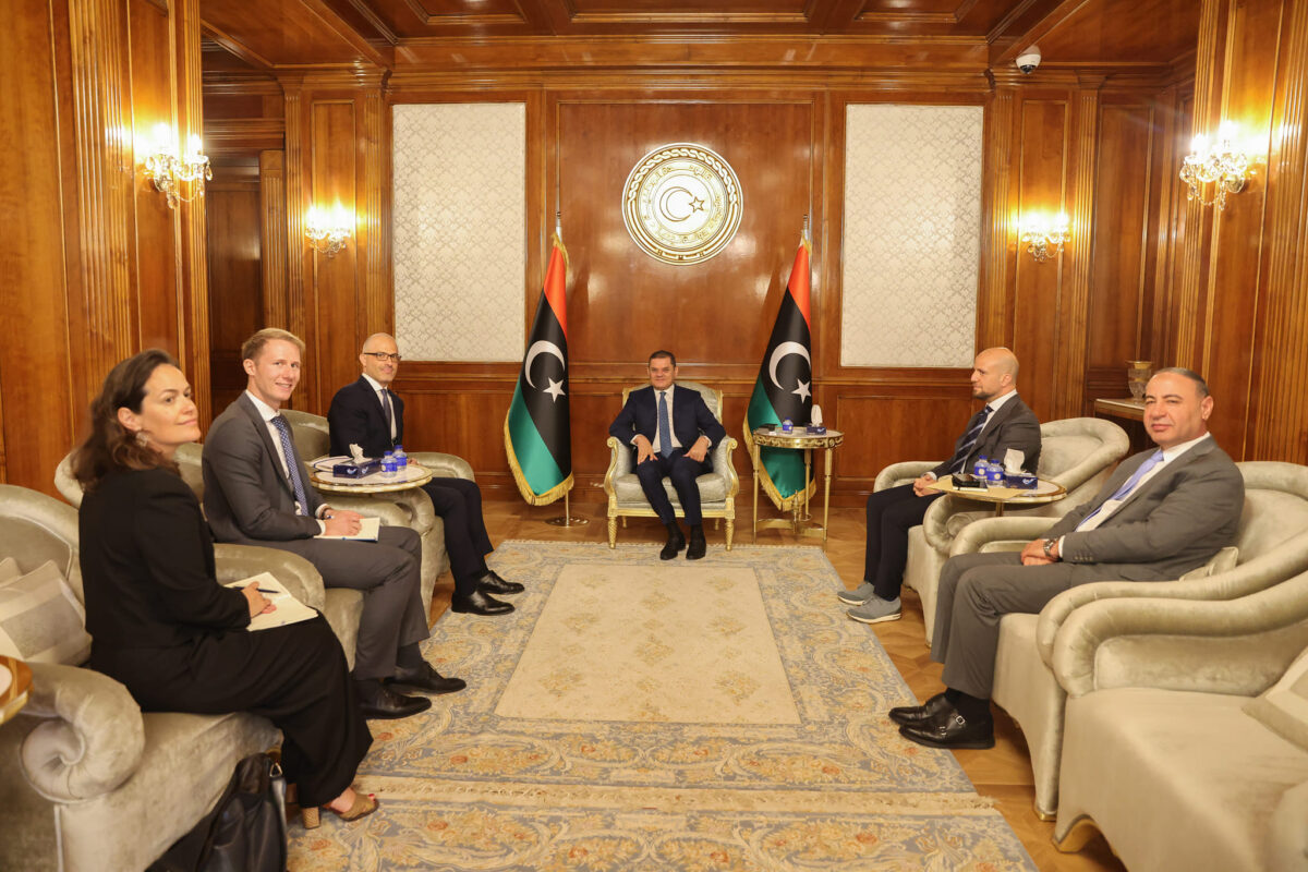 بحث رئيس حكومة الوحدة الوطنية عبد الحميد الدبيبة، ظهر اليوم الثلاثاء، في مكتبه بمجلس الوزراء مع سفير الاتحاد الأوروبي لدى ليبيا نيكولا أورلاندو تعزيز التعاون بين ليبيا والاتحاد الأوروبي في مختلف المجالات، إلى جانب المضي قدما في خطوات رفع حظر الطيران المفروض على ليبيا.