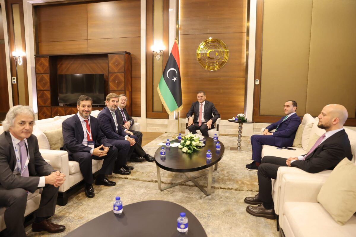 وناقش الدبيبة مع شركات ممثلة عن دول (تركيا وإيطاليا وإسبانيا وفرنسا)، ومنها إيني وريبسول وتوتال ووأويل إنفست و BGN، مجالات تطوير التعاون في استكشاف النفط واستثمار إمكانات ليبيا في مجال الطاقة.