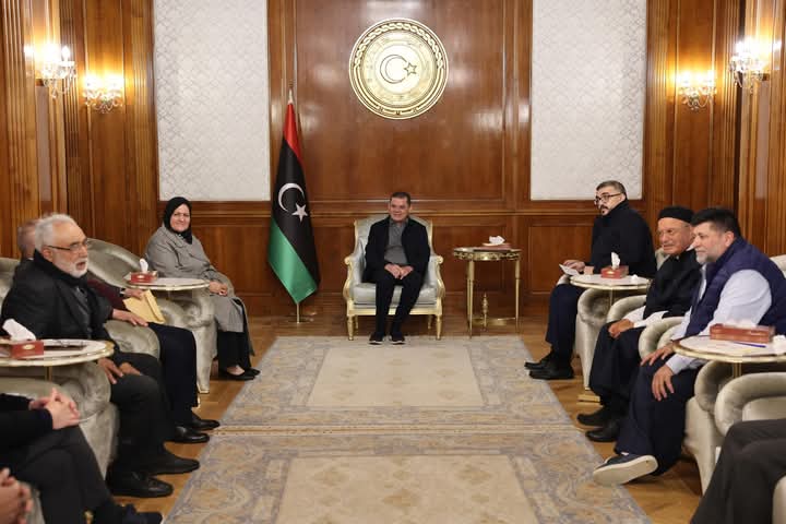 استقبل رئيس حكومة الوحدة الوطنية، عبدالحميد الدبيبة، عددا من أعضاء مجلس النواب عن مدينة الزاوية، إلى جانب عدد من مخاتير بلديات المدينة، بحضور وزير الحكم المحلي بدر الدين التومي، ووزير الدولة للاتصال والشؤون السياسية وليد اللافي.