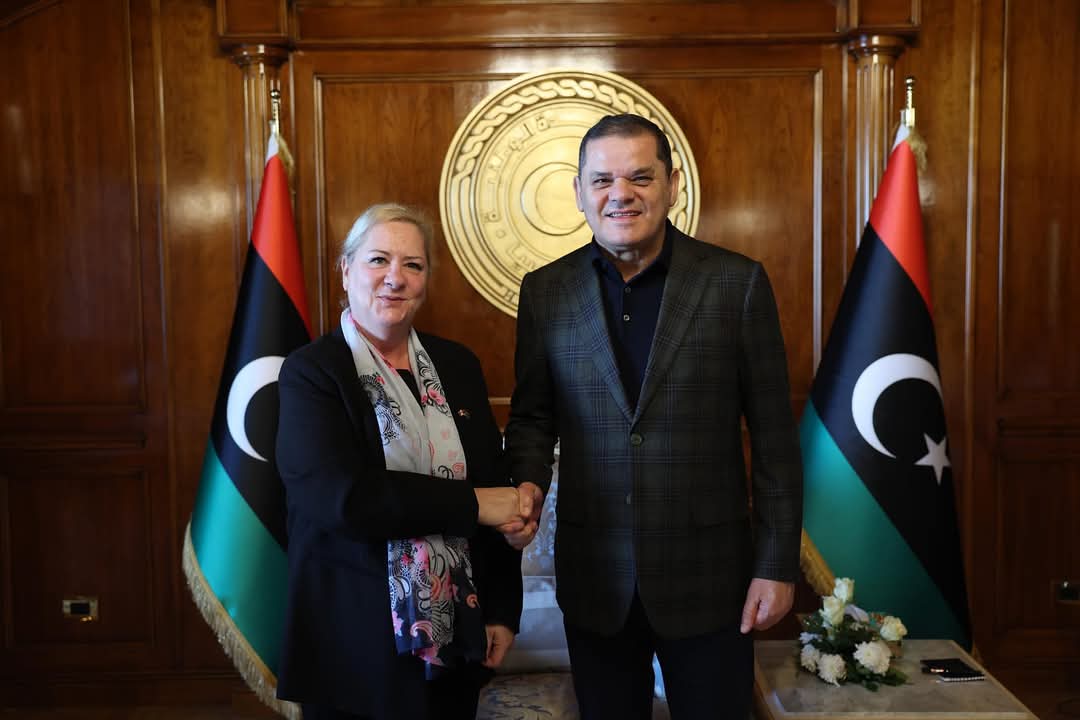 استقبل رئيس حكومة الوحدة الوطنية عبدالحميد الدبيبة، السفيرة الكندية لدى ليبيا، إيزابيل سافرد.