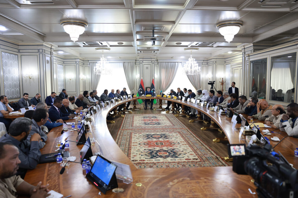 وفي حديثه للعمداء، أكد الدبيبة، “استمرار الحكومة في تفعيل الإدارة المحلية وتطبيق القانون رقم 59، الذي يهدف إلى تقديم الخدمات للمواطنين في مناطقهم”، مشددا على “الاستمرار في نقل الاختصاصات القطاعية وفق الجاهزية، وتوقيع المحاضر اللازمة بين القطاعات ووزارة الحكم المحلي”.